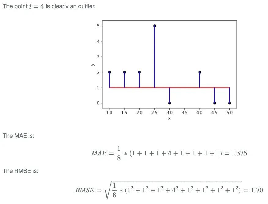 그럼 이런 의문이 생길 것이다. RMSE 도 MSE에 루트를 씌웠음으로 L2 loss의 이상치에 민감하지 않게 수정했는데, MAE가 있는데 왜 RMSE도 만들었을까? 일단 MAE의 경우에는 모든 오차에 대해 동일한 가중치를 부여한다. 반면, RMSE의 경우 제곱의 성질상 1보다 작은 오차에 대해서는 더 작게, 1보다 더 큰 오차에 대해서는 더 크게 반영이 된다. 따라서 "이상치에 민감하다" 는 측면에서는 RMSE가 상대적으로 MAE에 비해 민감하다고 할 수 있다.