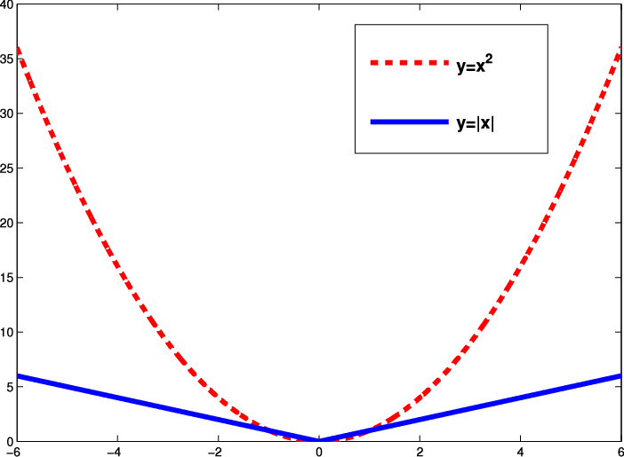 L1과 L2 loss는 실제 값과, 예측 값의 차이에 절댓값을 취하냐, 아님 제곱을 취하냐의 차이인데, 이 차이는 이상치(outlier)에 대해 서로 다르게 반응한다. 아래 그래프를 참고하면, 확실히 제곱을 취하면 이상치에 민감하고, 절대값은 제곱에 비해 이상치에 둔감하다. 해당 부분은 이후 데이터의 특징에 맞게 선택하는 것이 필요하다.